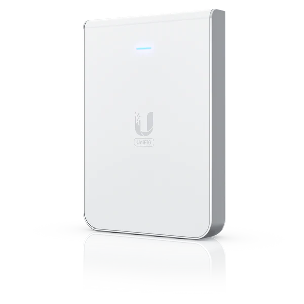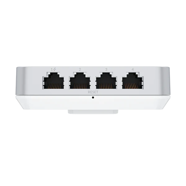 Wall-mounted WiFi 6 access point with a built-in PoE switch.